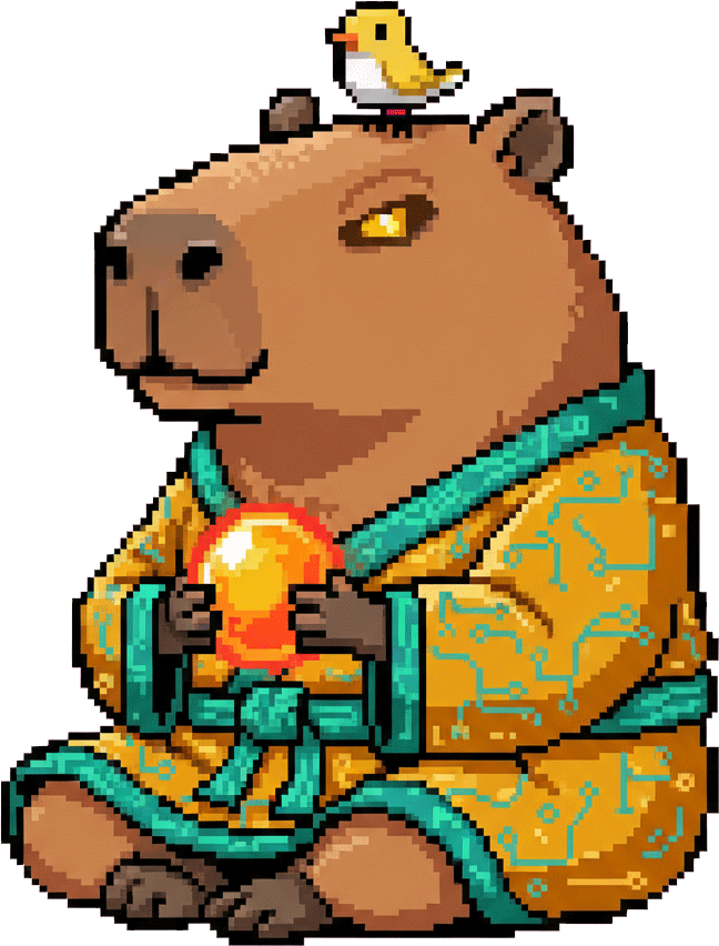 Without the Sage: a bird starts on a clear path but gets increasingly lost in dark, tangled code thorns. With the Sage: the capybara guide walks alongside the bird, lighting the path with its orb while agent capybaras serve as checkpoints.